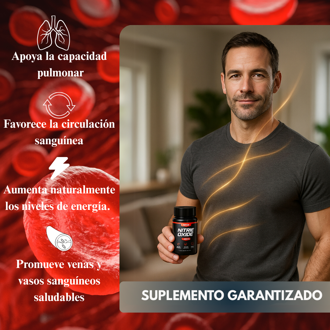 Mientras otros productos se centran en la estimulación momentánea con cafeína o soluciones hormonales riesgosas, Óxido Nítrico® actúa en el núcleo del rendimiento: la circulación. No solo sentirás más fuerza; tu cuerpo realmente estará funcionando mejor.